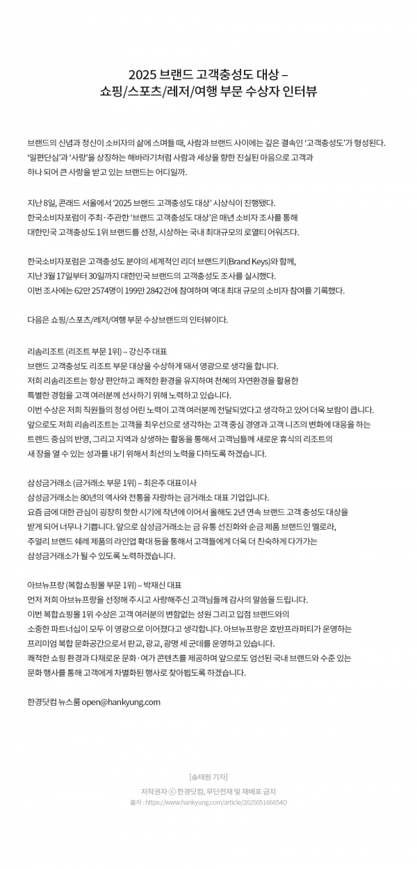2025 브랜드 고객충성도 대상 – 수상자 인터뷰